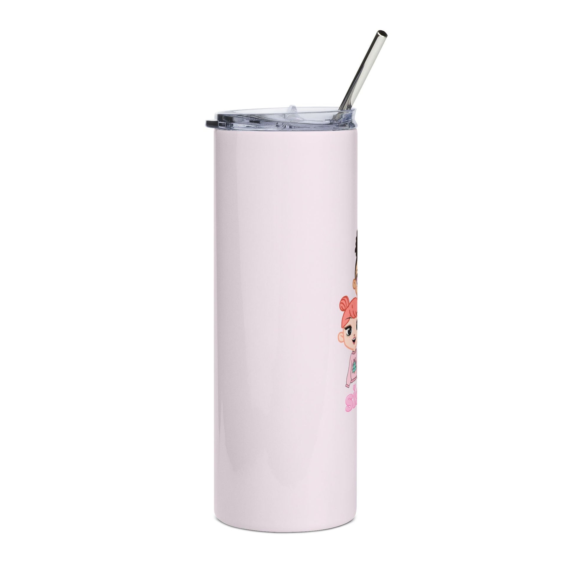 20oz Pink Stainless Tumbler — Cute 'Sisters' Cartoon Girls Design