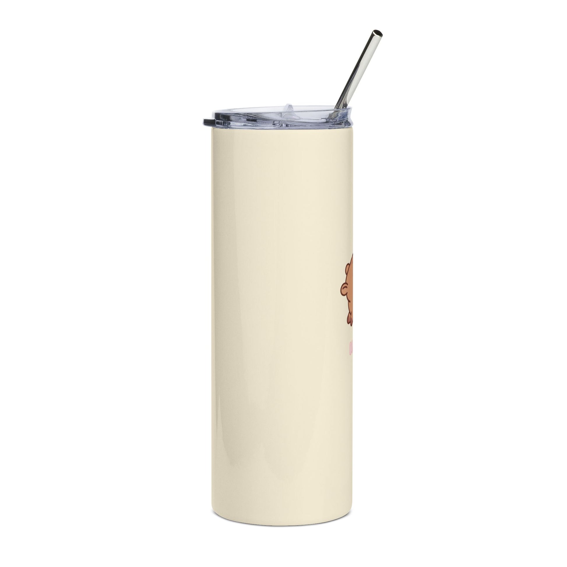 This 20 oz stainless steel tumbler brings a warm, playful touch to your daily routine. Its tall, slim silhouette holds drinks securely while the glossy protective varnish keeps the soft cream color and charming bear-and-sun illustration looking fresh. The included clear lid and reusable straw make sipping on the go simple and spill-resistant. Lightweight and rust-resistant, the tumbler slips into cup holders and backpacks, becoming the little companion that brightens commutes, desk breaks, and outdoor strolls.