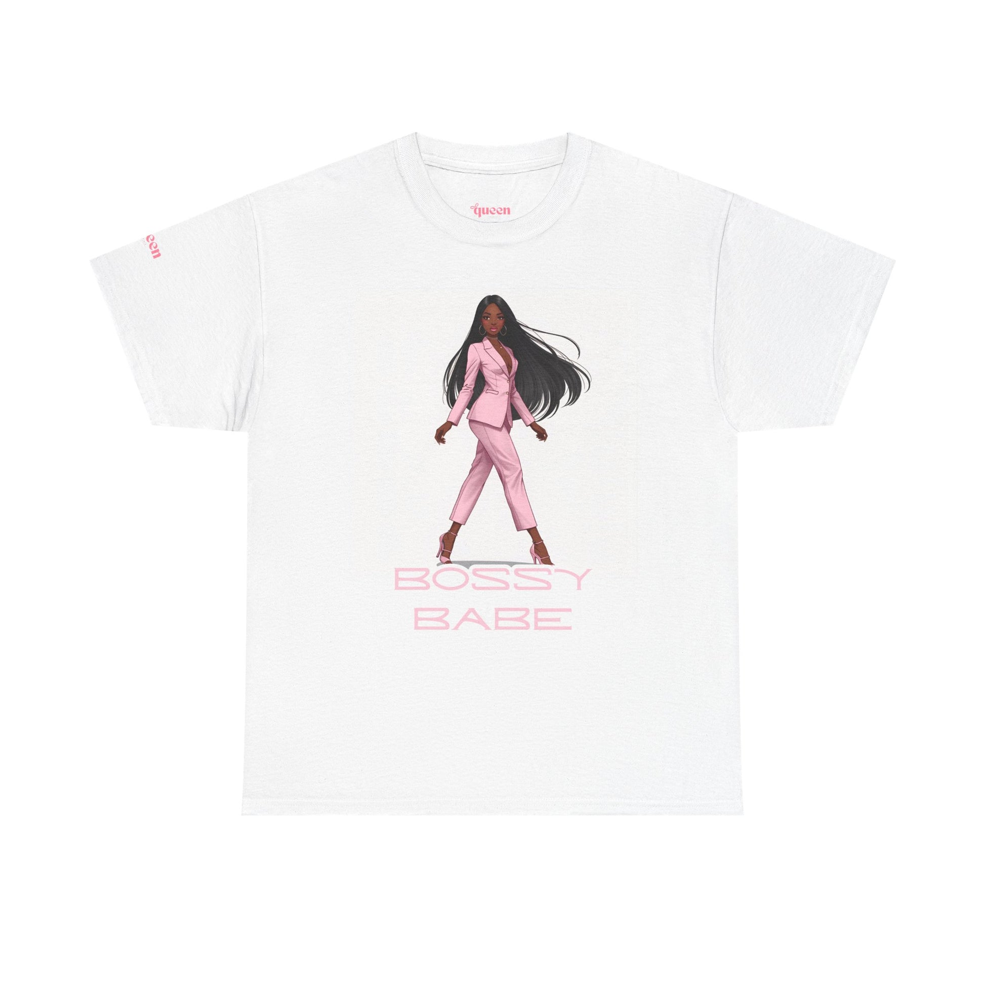 A confident, feminine tee made to move through your day with sass and polish. Soft, sturdy cotton and a classic crew cut create a relaxed canvas for the design: a poised woman in a pink suit strides forward, backed by subtle pink “BOSSY BABE” lettering. It feels like stepping into a power meeting or grabbing coffee before a creative shoot — effortless, bold, and quietly stylish. Wear it with high-waist jeans, tailored trousers, or a blazer draped over the shoulders to lean into that curated ‘I run things’ energy for brunch, networking events, or weekend city wanderings.