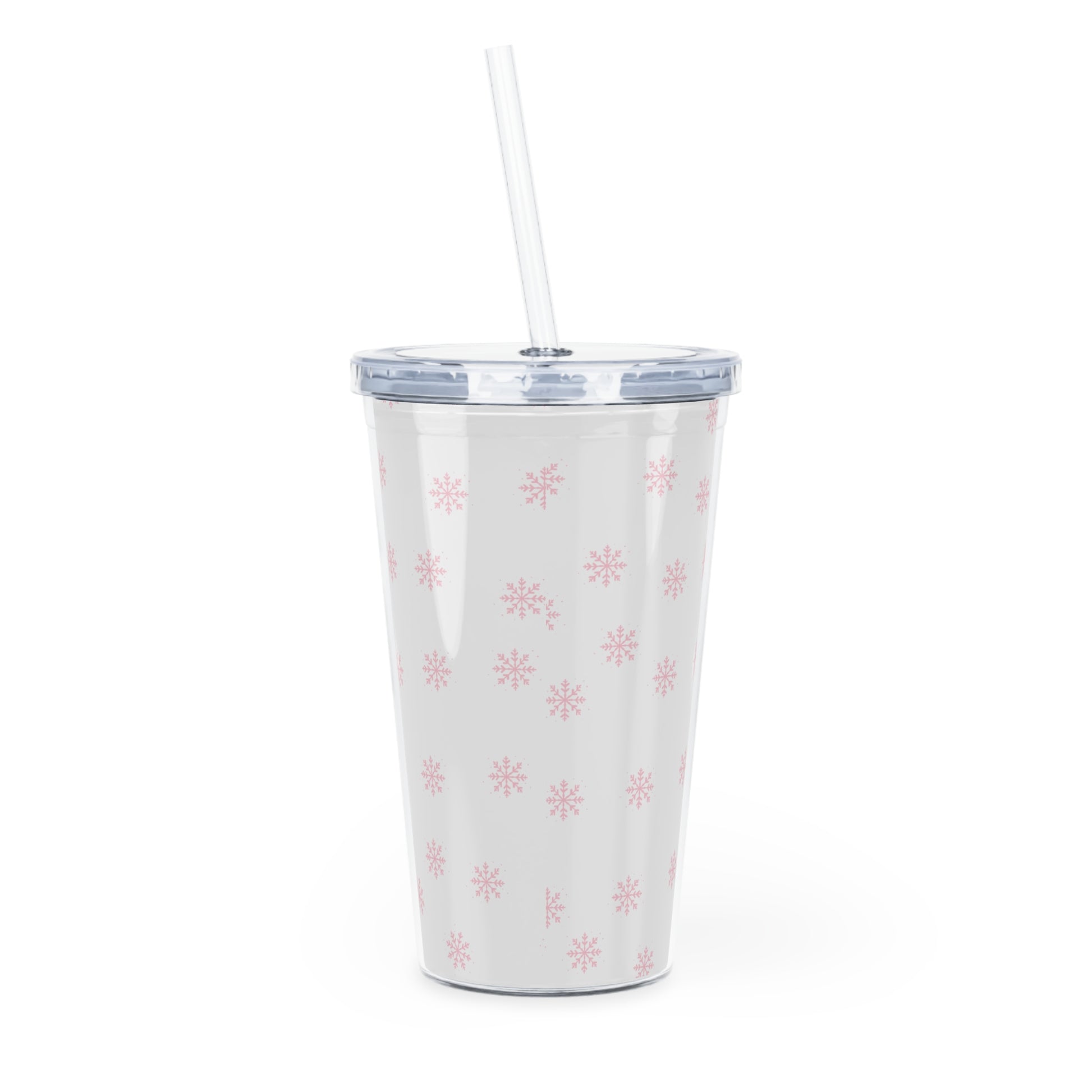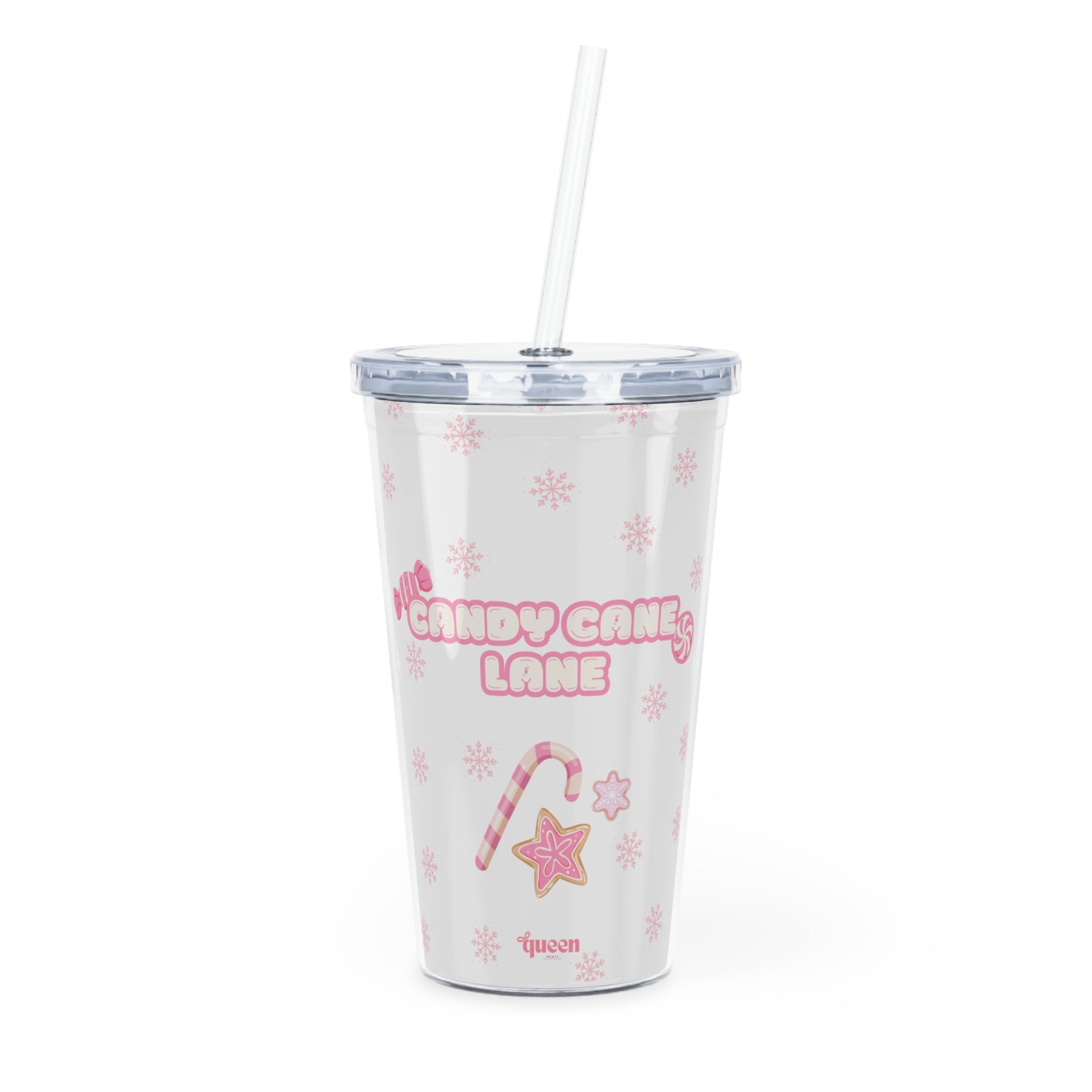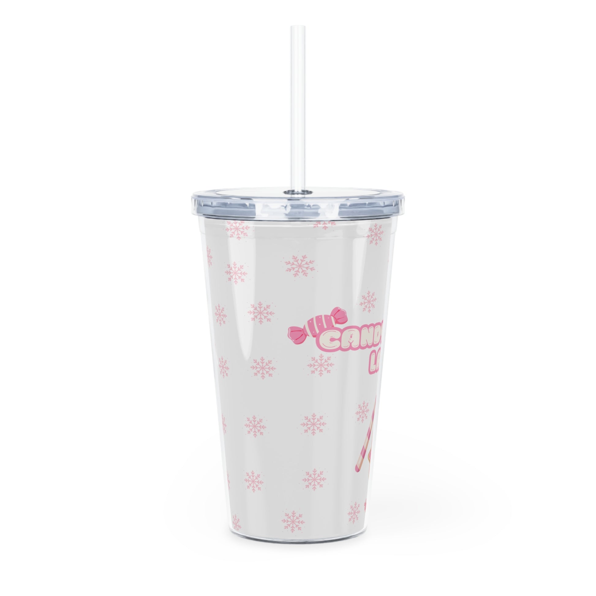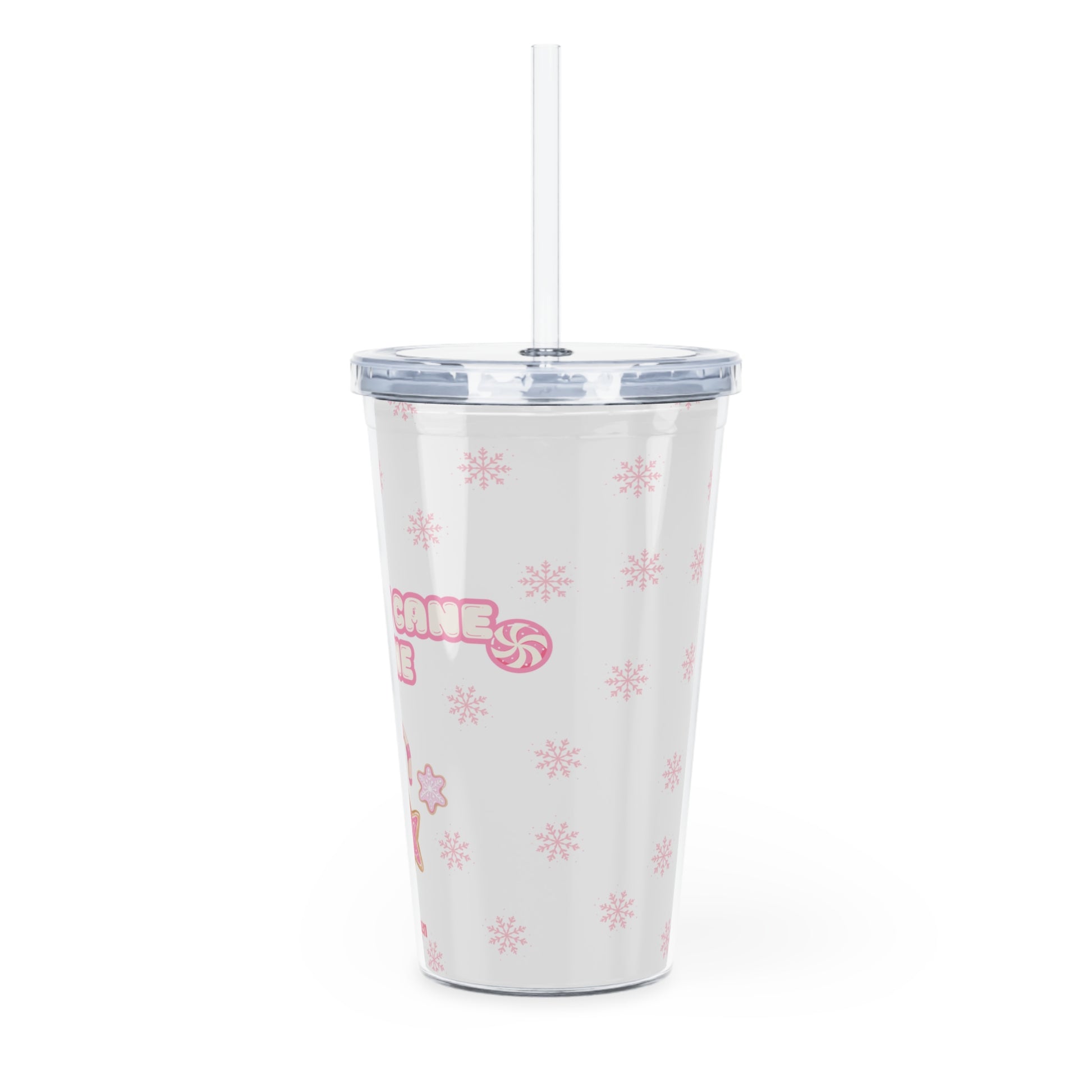 "Candy Cane Lane" Plastic Tumbler with Straw — Cute Pink Holiday Drink Cup