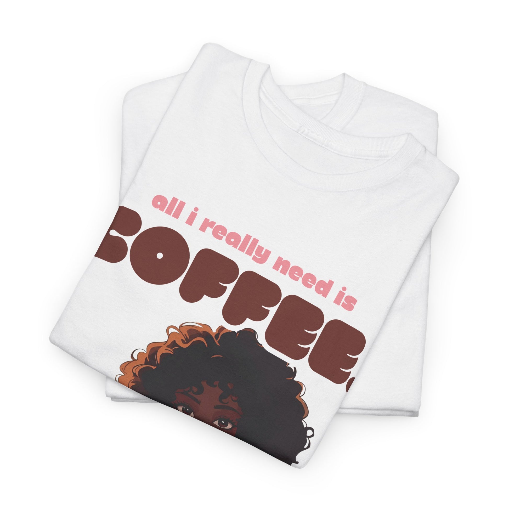 Coffee Lover T-Shirt — "All I Really Need Is Coffee" Afro Girl Graphic Tee