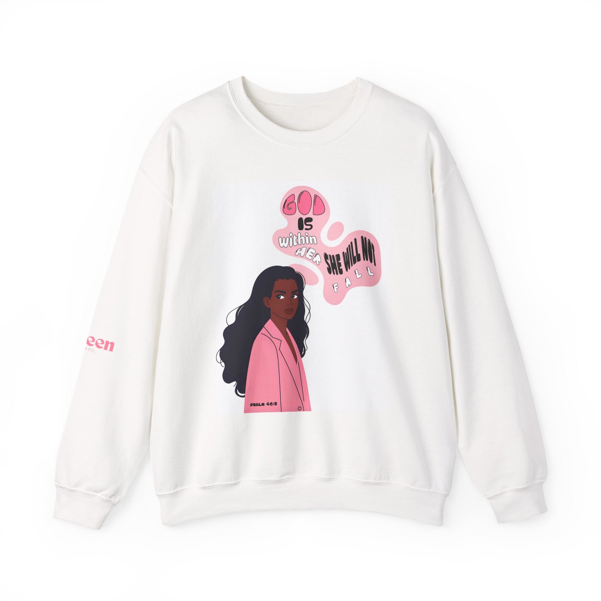 Crewneck Sweatshirt — "God Is Within Her, She Will Not Fail" Inspirational Graphic