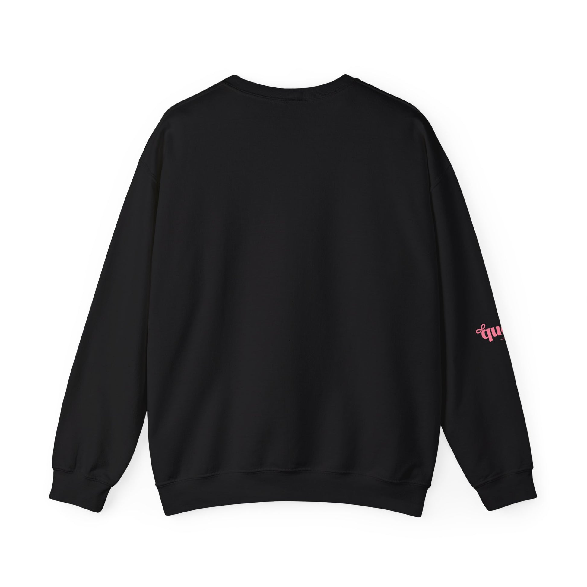 A soft, mid-weight crewneck that feels like a quiet hug on cool mornings. The clean white sweatshirt features a bold, illustrated portrait of a confident woman in pink, paired with playful bubble text above — a design that reads like a gentle affirmation. Subtle pink script on the sleeve and careful, high-quality printing keep the look modern and intentional. Wear it layered over a tee or under a jacket for low-effort style that still makes a statement about calm confidence and quiet resilience.