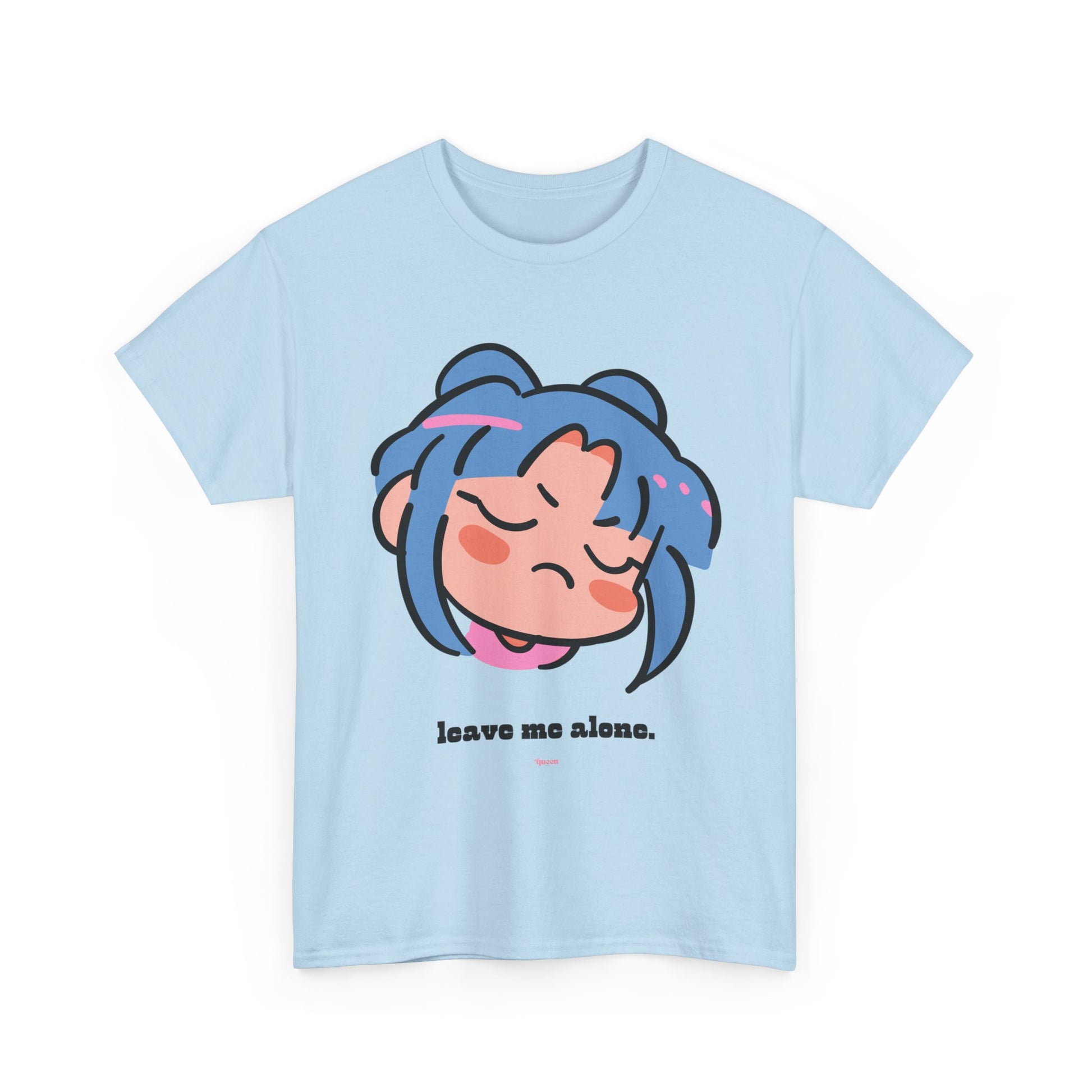 Soft, slightly oversized, and quietly expressive — this tee carries a small, hand-drawn-style character with a rosy, annoyed face and the understated line “leave me alone.” It’s the kind of shirt that speaks in short sentences: introverted humor, boundary-setting, and gentle moodiness. Wear it on slow weekends, during late-night study sessions, or when you need a low-key way to communicate a little personal space. The medium-weight cotton holds bright DTG/DTF prints with crisp color and clean edges, while the classic crew neck and relaxed cut make it an easy everyday layer that drapes well and feels familiar from the first wear.