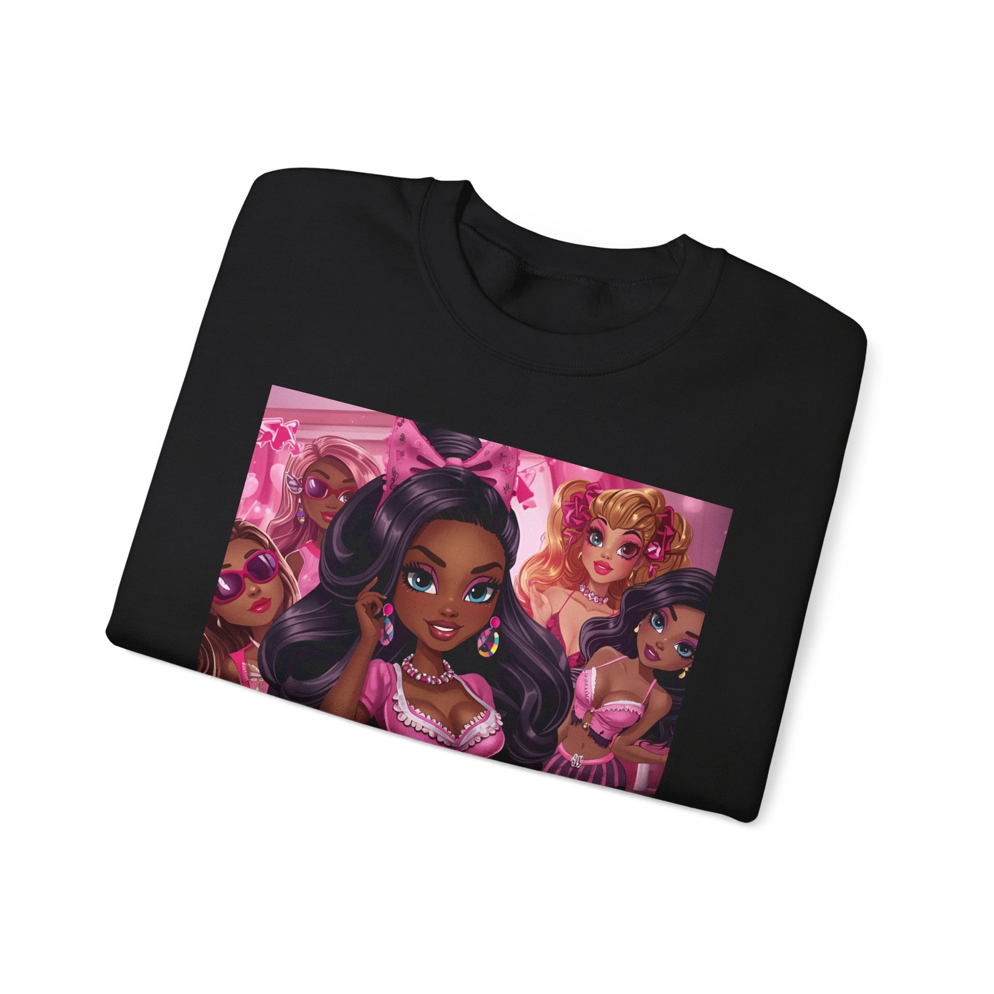 Slip into something cozy and playful with this crewneck sweatshirt that channels late-night laughs, fluffy pillows, and glittering friendship circles. The soft-medium weight fabric wraps you in warmth while the vibrant, retro-inspired artwork on the chest—featuring bold pinks and glam pajama-clad characters—brings instant party energy to quiet evenings at home or low-key meetups. A clean crew neckline and classic fit keep the silhouette relaxed and easy to layer. Subtle sleeve detailing adds a personal touch without shouting for attention. Wear it when you’re trading secrets with friends, planning a sleepover, or just craving a little extra sparkle on an ordinary day.