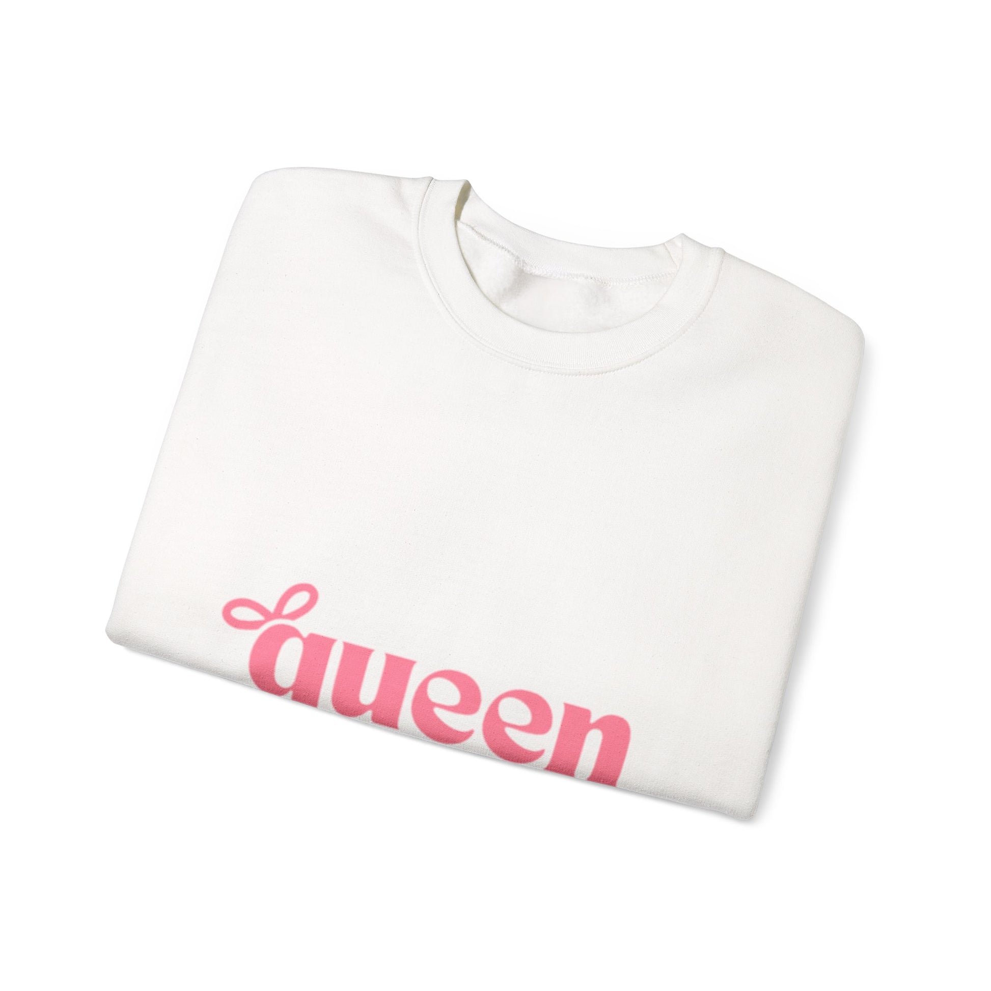 Queen Graphic Sweatshirt — Pink Script Crewneck for Women